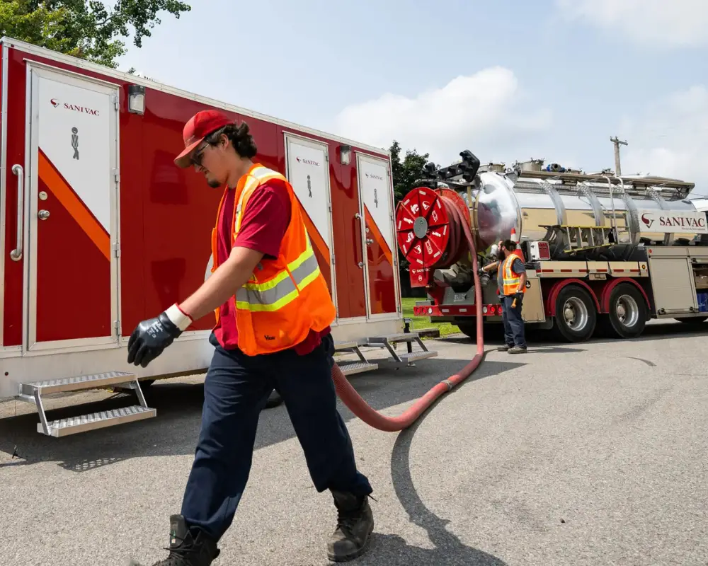 Division principale du Groupe, Sanivac offre des services complets en assainissement et gestion des matières résiduelles : fosses septiques, trappes à graisse, toilettes portatives, blocs sanitaires et conteneurs. Avec plus de 15 000 unités en location et une flotte spécialisée, Sanivac est le partenaire incontournable et fiable des chantiers, événements, municipalités, et clients résidentiels.